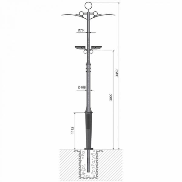 Декоративная опора "Колизей" - 2 - 6,4 предназначена для освещения парков, скверов, набережных, аллей, коттеджных посёлков, прилегающих территорий.