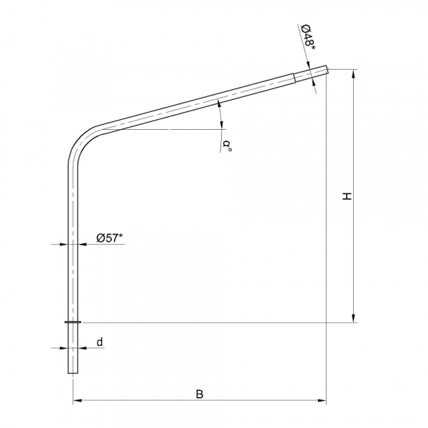 Однорожковые кронштейны К1-1,5-1,5-7-1 предназначен для крепления светильника на трубчатой опоре освещения. Завод опор освещения «Альдекс» изготавливает однорожковые консольные кронштейны из стального проката. Собственное производство позволяет выполнять изделия надлежащего качества и в кратчайшие сроки. Конструкция однорожковых кронштейнов К1-1,5-1,5-7-1. Конструкция консольных однорожковых кронштейнов К1-1,5-1,5-7-1 представляет собой гнутую металлическую трубу заданных размеров.